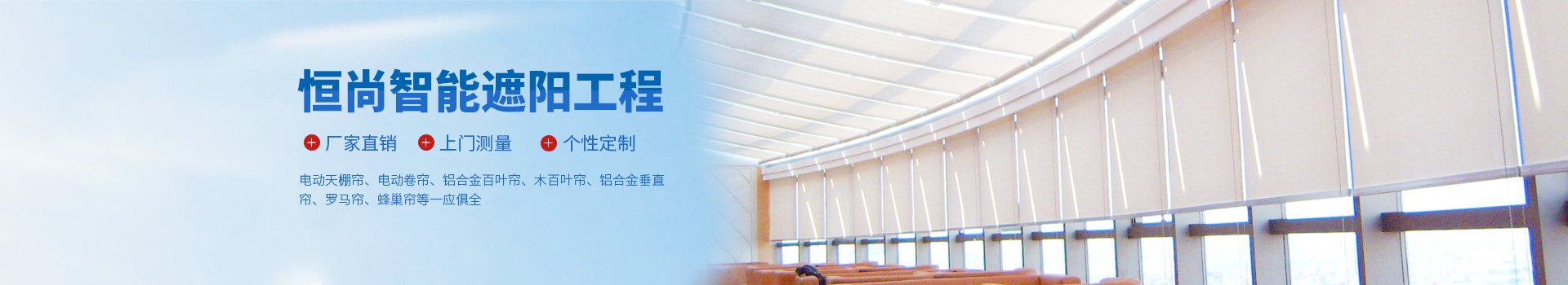 安徽恒尚智能化建筑遮陽工程有限公司是生產高品質窗簾產品的專業公司。本公司擁有廠房面積5000余平方米,是安徽省先進的電動窗簾生產廠家,公司擁有大型先進的窗簾制作設備和專業的生產和安裝技術人員,并有著嚴密的管理和質量體系,有效地保持了產品質量。本公司具有豐富的建筑遮陽系統的應用技術和建筑遮陽工程的施工經驗,可持續為全國用戶提供先進、專業的遮陽節能產品,可為建筑設計院和裝飾設計工程公司提供專業的建筑遮...